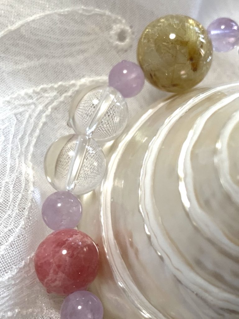 愛の石インカローズと、パワフルな財運の石、タイチンルチルが入っています!